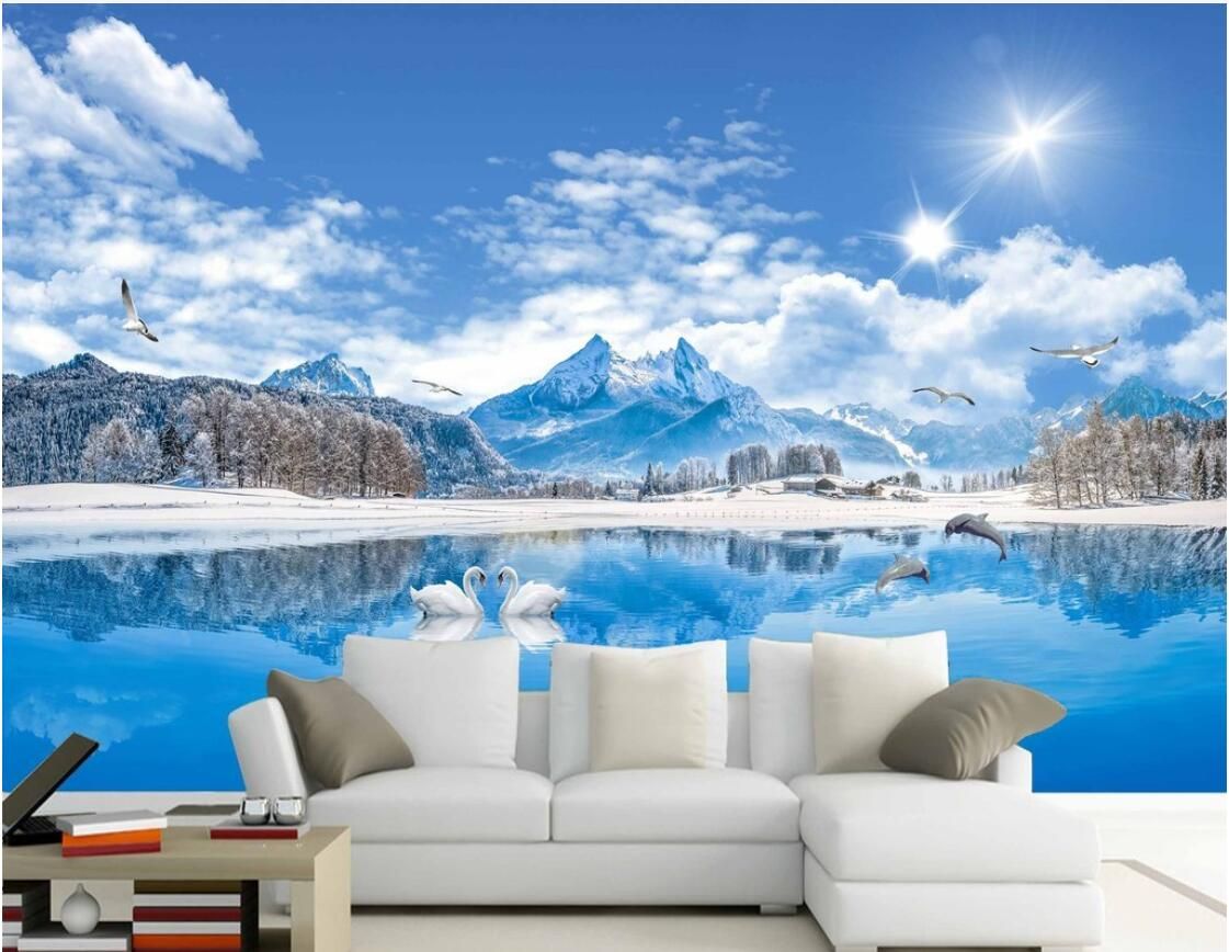 Satin Al 3d Duvar Kagidi Ozel Fotograf Duvar Hd Lake View Swan Kar Manzarasi Wallpaper Image Source @ tr.dhgate.com